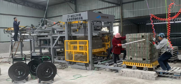 泉州智峰機械有限公司在水泥制品自動化生產有幾年間開發及技術革新,擁有豐富的實際運用經驗及一批具有豐富理論、設計和實踐生產經驗的專業人才,研發智能收磚線,低電壓無線控制字母擺渡車,給客戶帶來省工、省時、省力一系列成本,深受廣大客戶信賴。自2015年開始立項研發智能收磚機,經過反復實驗及不斷創新。于2017年底成功投入市場,是目前國內唯一一家可實現碼垛任意層中預留叉車孔的智能收磚線,解決水泥制品企業長期的用人工困擾問題,帶動磚機產業進一步升級,創新驅動、永恒專注,低壓無線擺渡線、全自動打包配合智能收磚線實現水泥制品全流程無人化智能生產。